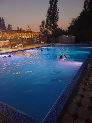 - Вечерняя подсветка бассейна и гирлянды под навесом — комфортное купание после заката.
