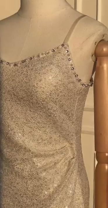 Роскошное платье в бежевом цвете с вышивкой из бисера, ручная работа