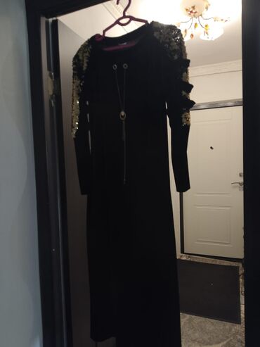 Вечернее платье, Длинная модель, Велюр, С рукавами, XL