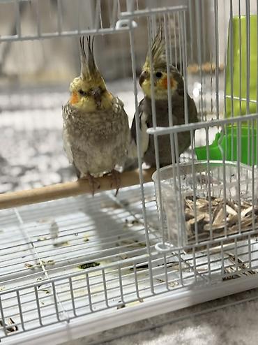 Кореллыв комплекте с клеткой - Пара корелл с яркими хохолками: один