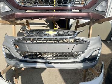 Передний бампер Chevrolet Spark (оригинальный), с решёткой радиатора и эмблемой led туманка
