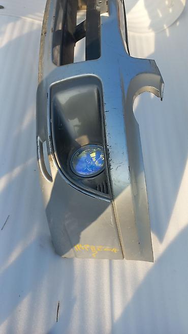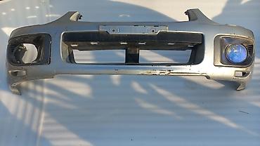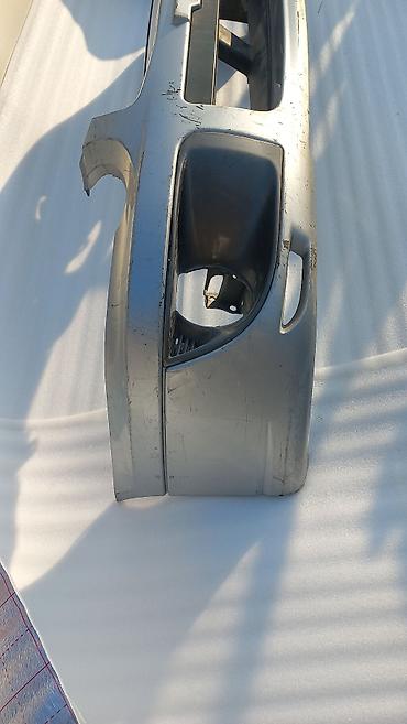 Передний бампер для автомобиля (серебристый цвет), с местами под противотуманные фары и центральной пластиковой решёткой-нижней юбкой. Особенности: - Комплектность: корпус бампера, посадочные под ...