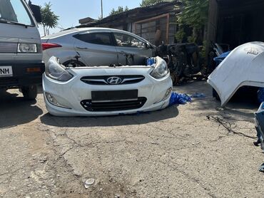 Комплект автомобильных бамперов и облицовок (оригинал) Состав на фото: - Передний бампер Hyundai с решёткой радиатора, местом под номер и блоками ДХО/повторителей в углах. - Передний бампер Kia с ...