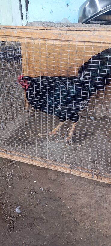 Петух породы джерси-гигант окрас черный с изумрудным отливом. Характеристики: - Массивное телосложение, широкий корпус, пышное оперение - Плотные, блестящие перья с зеленым переливом - Хвост высок...