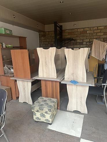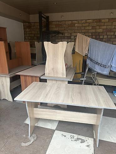 - Варианты исполнения: на фото видны столы в светлом дубе и схожей модели в тёплом ореховом оттенке.