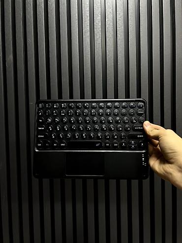- Беспроводная клавиатура с тачпадом и русско-английской раскладкой: удобна для набора текста, учебы и работы.