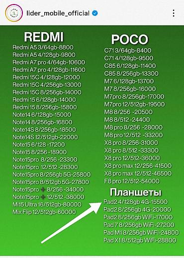 Xiaomi Redmi Pad 2 с поддержкой сим карты 🆕 8/256гб - 20700 сом 📍Характеристики ; •Процессор - Helio G100-Ultra •Ёмкость аккумулятора - 9000мАч (время работы 19-22 часов) •Динамики - Dolby Atmos ...