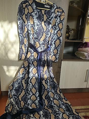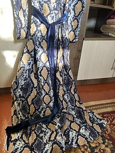 Платье макси с поясом и принтом под змеиную кожу. - Длина: макси