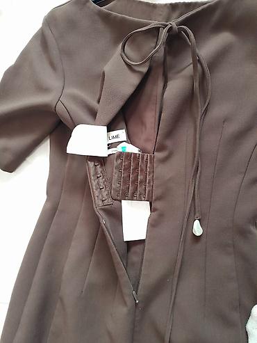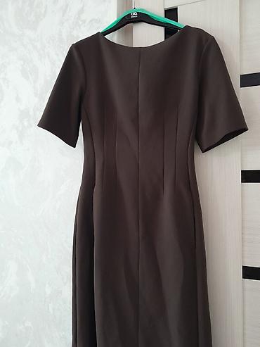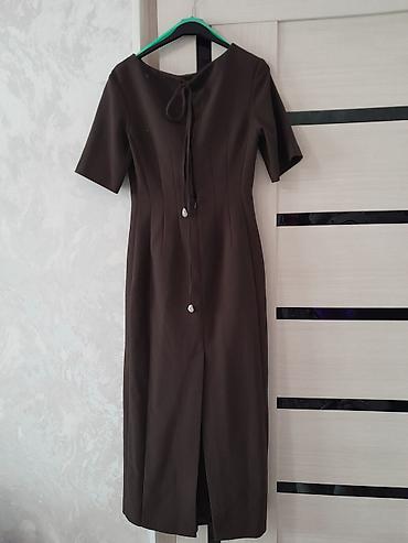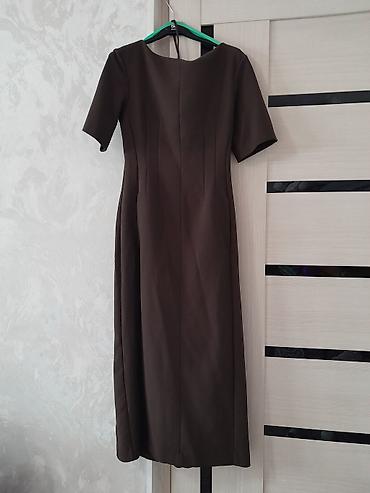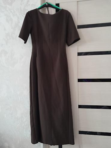Платье миди, шоколадного цвета, лаконичного кроя.