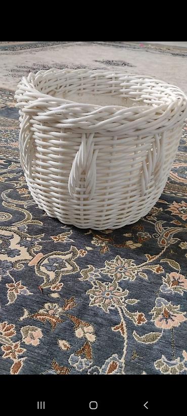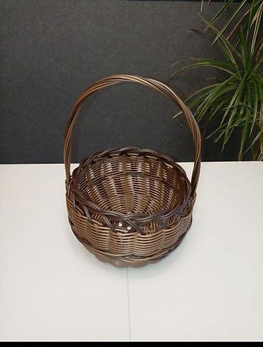 - Корзина с ручкой (коричневая): универсальная, прочная, со скрученным декоративным кантом по краю. Удобна для пикника, хранения мелочей, декора.