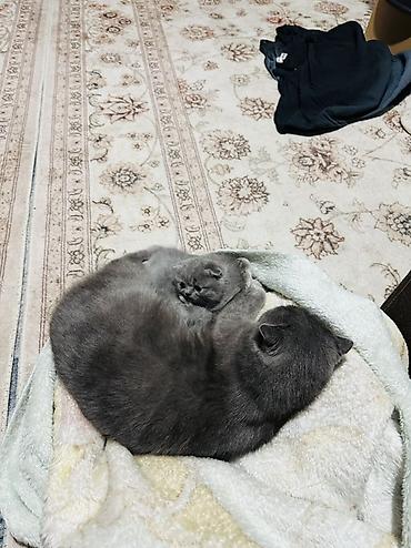 Плюшевые котята серого (голубого) окраса с короткими ушками и круглой мордочкой. Компактные, коренастые, с густой мягкой шерстью и выразительными голубыми/серо‑голубыми глазами. Ласковые, любопытные, аккуратно пользуются лотком, хорошо ладят с детьми. Выросли в домашней обстановке, ручные, игривые.
