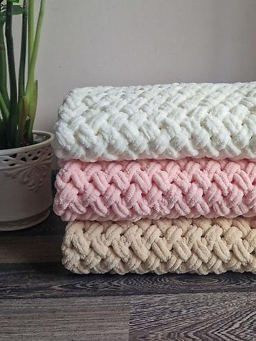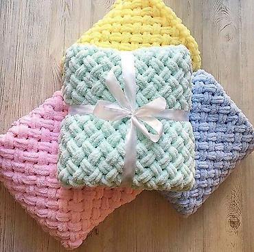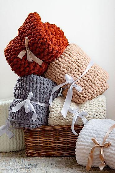 Плюшевые вязаные пледы ручной работы