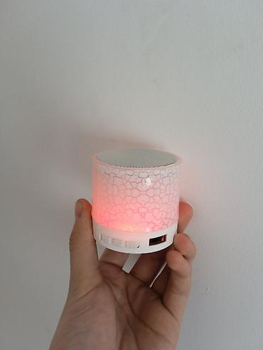 - Компактный цилиндрический корпус с декоративным «трещинным» рисунком и многоцветной подсветкой (меняет цвета)