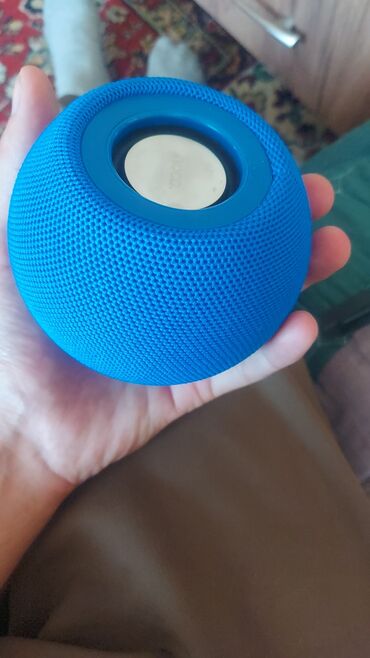 - Компактный шарообразный корпус с тканевой акустической сеткой и нижним пассивным излучателем.