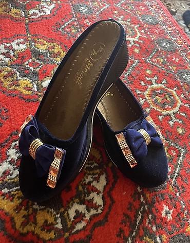 - Верх: бархатистый текстиль тёмно‑синего цвета