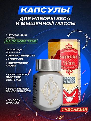 Samyun Wan — капсулы для набора веса и увеличения мышечной массы. Подходит: - людям, желающим набрать массу; - бодибилдерам и спортсменам. Форма выпуска: банка 20 капсул. Заявленный результат: д...