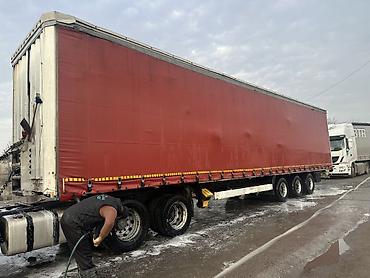 Тентованный полуприцеп (шторный) Описание:марка Крон жылы 2014,абалы абдан жакшы,105куб мега,кошумча стойкалар койулган,шторкалар иштейт,дөңгөлөктөр 80%,майланган,чирик жок,тентер бүтүн суу кирбей...