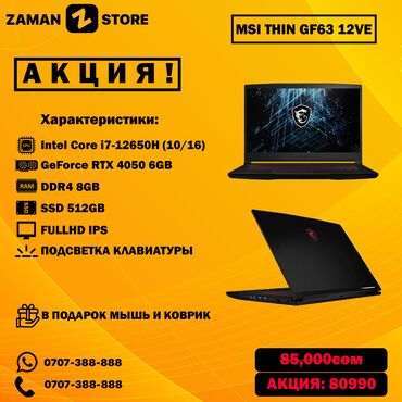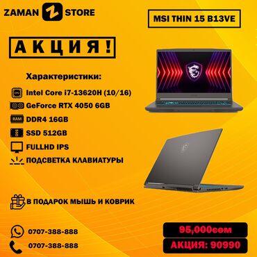 Ноутбук-msi 🔳-модель-msi 🔳-процессор-core i5-13420H 🔳-оперативная память-16GB 🔳-накопитель-SSD-512GB 🔳-видеокарта-RTX4050/6GB 🔳-размер дисплея-15.6 🔳-экран-FHD IPS 🔳-Год выпуска -2024-25 🔳...