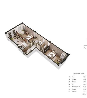 2 комнаты, 83 м², 12 этаж, Готовая ПСО (под самоотделку)
