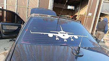- Заднее стекло с крупной виниловой наклейкой «самолёт».