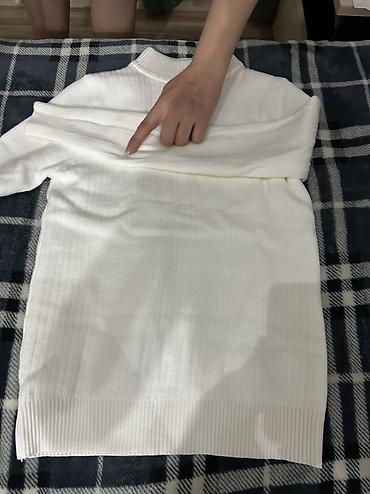 Белая женская водолазка с декоративным крупным воротником-складками и съемным/пришитым (визуально — тканевым) цветком-розой сбоку. - Материал: мягкий трикотаж тонкой вязки. - Крой: приталенный си...