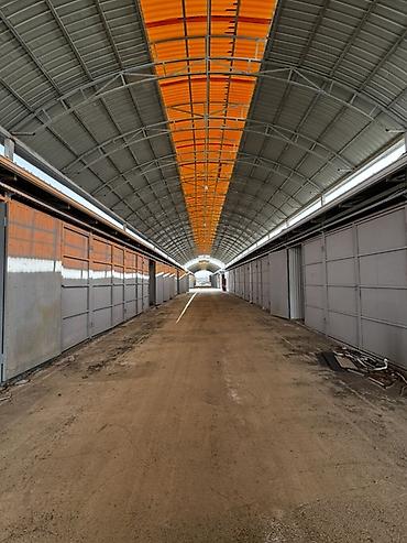 Ош шаардык жаны Базар. , Торговый бокс/павильон в крытом рыночном ряду. - Формат: отдельный бокс с подъемными металлическими рольставнями. - Расположение: внутри крытой галереи рынка, широкий про...