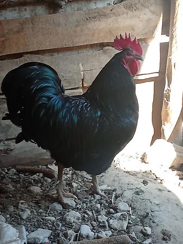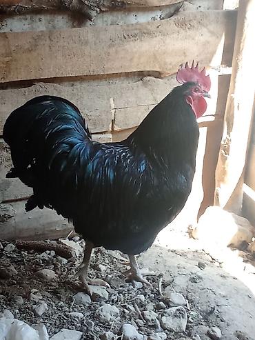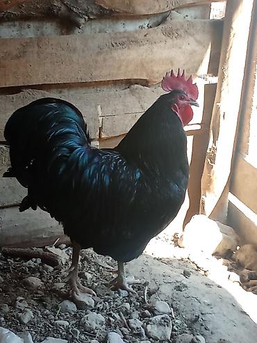 - Крупный, статный петух с насыщенным чёрным оперением с зелёным отливом.