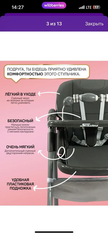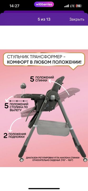 Детский стульчик для кормления - Комфортное сиденье с мягкой вставкой и ярким принтом, высокая спинка. Откидывается в лежачее положение - Съемный большой столик - Прочная металлическая рама на ус...