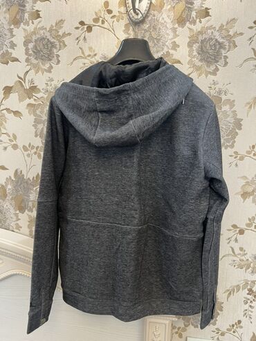 Толстовка Jordan новая оригинал 100% на молнии с капюшоном. Цвет – тёмно-серый меланж. Имеет удобную застежку-молнию и капюшон со шнурком. Подкладка капюшона выполнена в голубом цвете. Подходит для повседневной носки и занятий спортом.