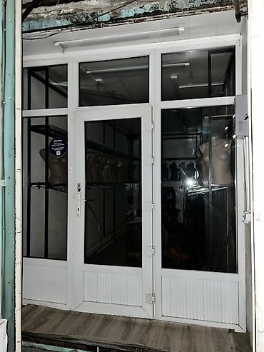 Комплект: остекленная входная группа (дверь + окна), внутренние торговые рейлы/кронштейны, манекены-торсы, светильники.