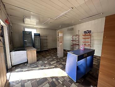 - Внутри установлены базовые элементы торгового оснащения: стеллажи, металлические решетчатые полки, прилавки, витрина, несколько холодильных шкафов и морозильный ларь.