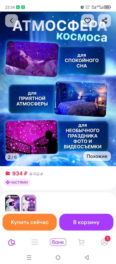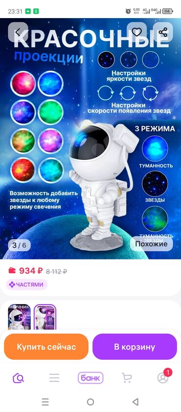 Создаёт «атмосферу космоса» для сна, уютной обстановки и эффектных фото/видео. Красочные проекции туманностей и звёзд на стены и потолок.