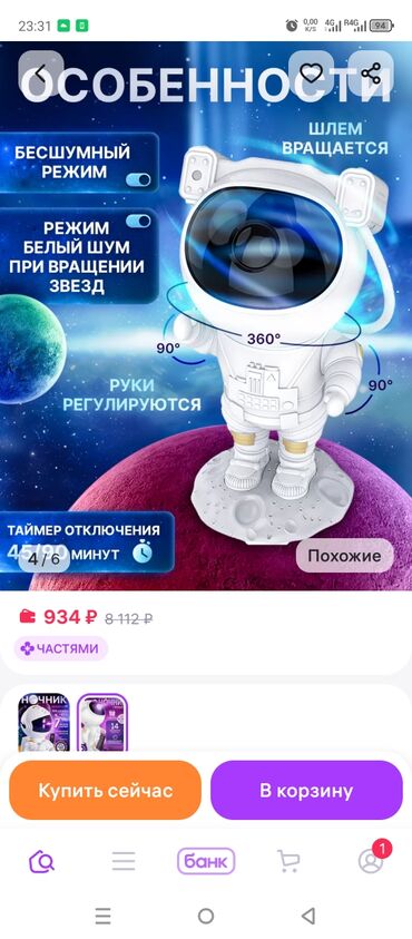 Проектор-ночник «Космический астронавт»