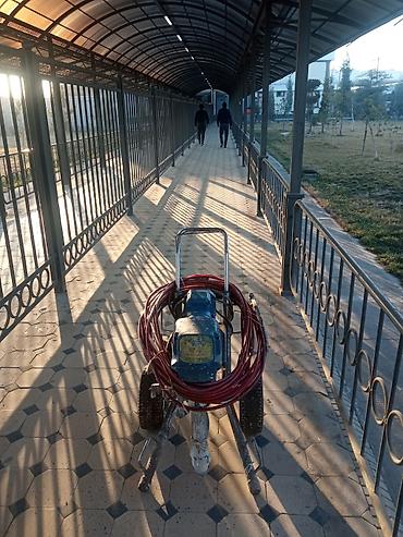 - Профессиональная безвоздушная окрасочная станция на колёсной раме с длинным шлангом и пистолетом-распылителем — обеспечивает высокую скорость и равномерность нанесения.