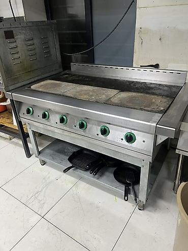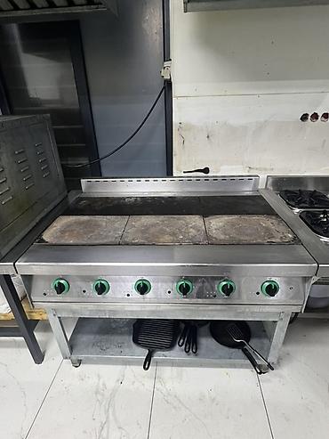 Профессиональная электрическая жарочная поверхность (планча) из нержавеющей стали, шириной на 6 зон нагрева.