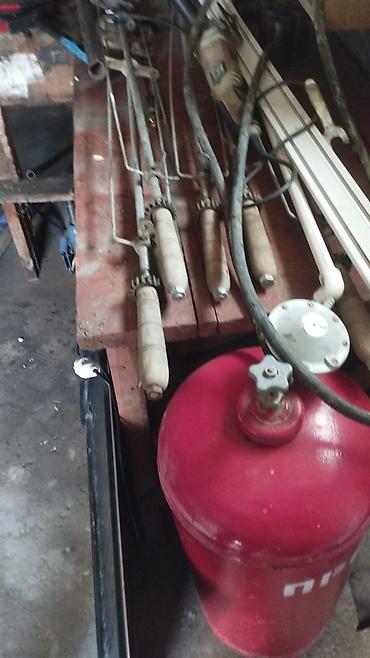 - Подключение к газу; показан газовый баллон и шланги (арматура, редуктор — по фото).