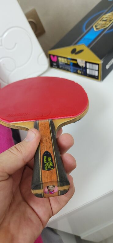 Ракета Butterfly Viscaria super alc оригинал примерно 91 г.( Япония). Быстрые топсы и много вращения, с средней зоны вообше идеально попадает на стол. Накладки чёрная Xiom Omega 7 pro (Korea), красная Dignics05 2,1(Германия) в хорошом состоянии .19000 сөм.(Забронировано).