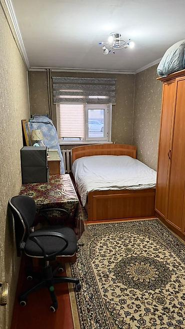 - Вторая комната под детскую/кабинет: кровать, шкаф для хранения, рабочее место с креслом, окно с рулонными шторами.