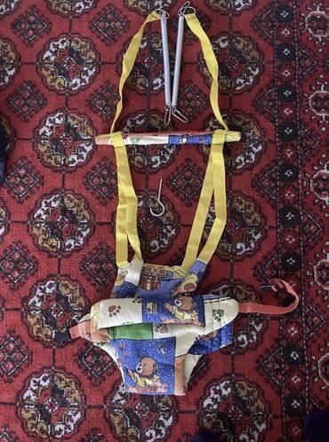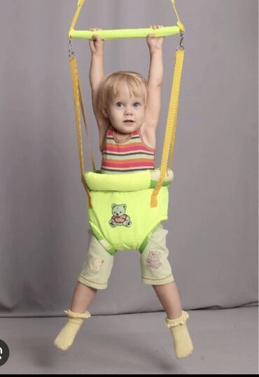 - Комплект: мягкое сиденье-подгузник с наполнителем, широкие регулируемые лямки, перекладина-держатель, 2 металлические пружины с карабинами, потолочный крюк для крепления.