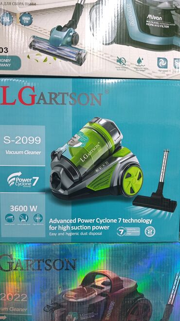 - LGartson S-2099 (контейнерный): технология Power Cyclone 7 для высокой силы всасывания, мощность 3600 Вт, регулятор скорости, легкое и гигиеничное опустошение контейнера.