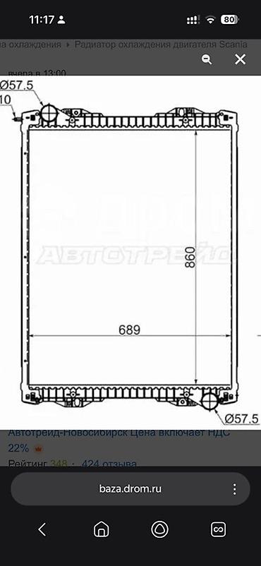 - Диаметр патрубков: около Ø57,5 мм (верх/низ).