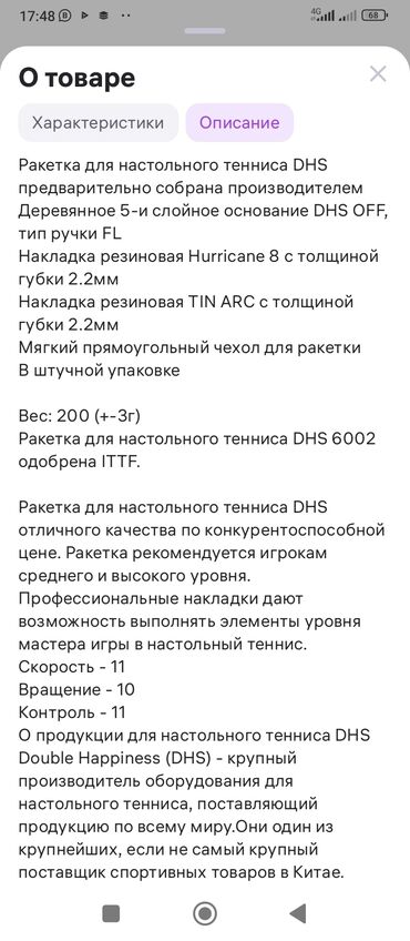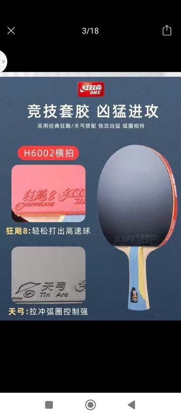 Бесплатная доставкаРакетка DHS Орто Жана профессионал ойунчулар учун. наклаткасы алдынкы бети. Харрикейн. арткы бети tin ark.