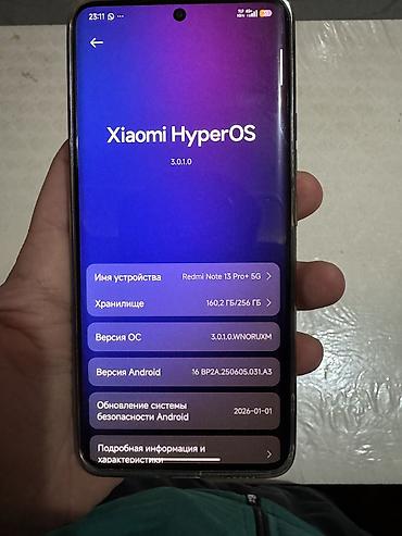 Redmi Note 13 Pro (Global) - Память: 8/256 ГБ (доступно ~27,3 ГБ из 256 ГБ на скриншоте настроек) - Экран с центральным вырезом под камеру, тонкие рамки - Операционная система: Xiaomi HyperOS 2.0....