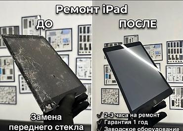 - iPad: замена переднего стекла/дисплея, аккумулятора, разъемов, кнопок, камер