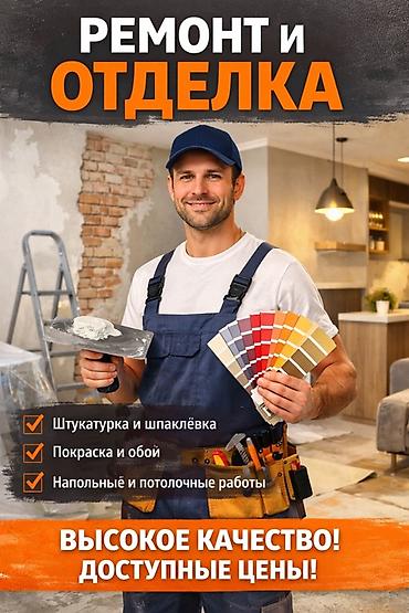Үйдү ремонт кылабыз под ключ Электр зымдарын монтаждайбыз Сантехникалык иштер… Дубал, шып жана полду тегиздейбиз Кафель, ламинат, обой жабыштыруу Эшик-терезе орнотуу Боёк жана...