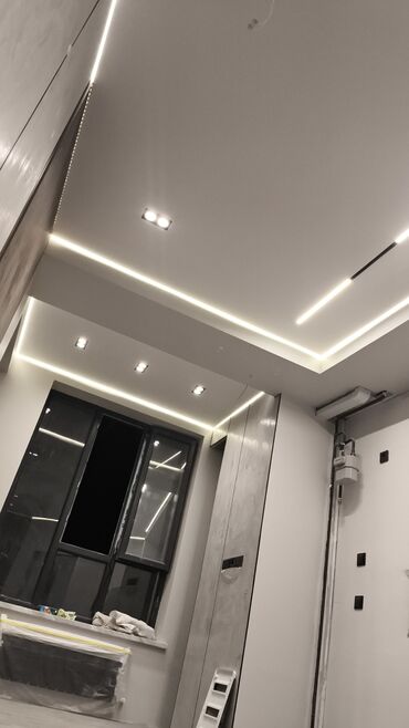 - Потолки: многоуровневые гипсокартонные решения со встроенной LED‑подсветкой, нишами под карниз, скрытая проводка.