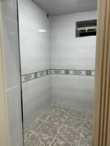- Санузел/душевая: полностью в керамограните и плитке, светло‑серая палитра, декоративный бордюр, отдельное окно для вентиляции.