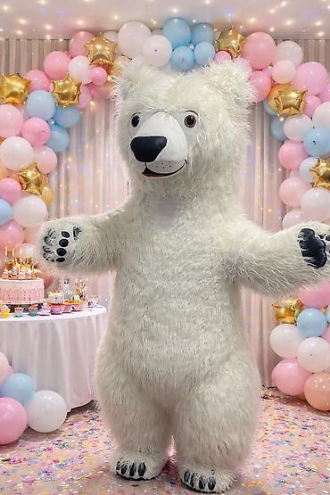 Аниматор в костюме белого медведя для праздников и мероприятий.