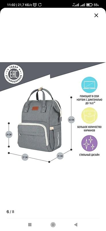 Сертификация ЕАС. Подходит для прогулок с ребёнком, поездок, учебы и работы. Помещаются подгузники, питание, игрушки, сменная одежда и техника.