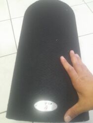 - Фазоинверторное оформление, компактный цилиндрический корпус, обтянутый карпетом.